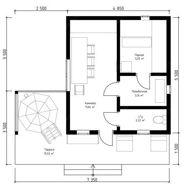 1. Свайный - Винтовые сваи 89×2500 или 108×2500 (стальная труба, залитая бетоном, оголовок)