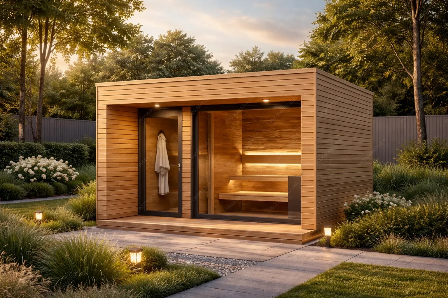 Модульная баня «Радон» площадью 12 кв.м. с односкатной крышей представляет собой ультракомпактное и технологичное решение. Пространство организовано по принципу последовательной анфилады: вход осуществляется через помещение душевой/раздевалки, оснащенное панорамной дверью, ведущее непосредственно в парную. Такая планировка максимально рационально использует каждый метр при габаритах 3х4 метра. Ключевой акцент сделан на визуальной открытости: панорамная дверь в первом помещении и большое окно в парной стирают границу с окружающим ландшафтом, создавая эффект единения с природой. Односкатная крыша подчеркивает современный и лаконичный дизайн. Модульная конструкция обеспечивает предельно быструю сборку на подготовленной площадке. Проект идеально подходит для организации персонального спа-уголка на ограниченной территории, где на первый план выходят функциональность, скорость монтажа и эстетика минимализма, усиленная панорамными элементами.