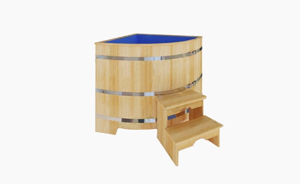 Угловая кедровая купель с пластиковой вставкой - отличное приобретение для загородного дома или дачи, которая разнообразит банные процедуры и принесет пользу для здоровья тела! Пластиковая вставка обеспечит герметичность и длительный срок службы при частом использовании. Ее конструкция позволяет эргономично разместить купель даже в самом небольшом помещении. А возможность приобретения дополнительных опций - аэромассажа и подсветки сделает процедуру не только полезной, но и приятной. Продуманная система слива позволит быстро и надежно установить купель. Купель изготовлена из настоящего алтайского кедра. Деревянная конструкция стягивается металлическими ободами, надежно скрепляющими купель, как в традиционных деревянных бочках. Внутри и снаружи для удобства установлены лестницы, также изготовленные из кедровой древесины. Материал купели - кедр издавна славится своими полезными качествами, способствующими оздоровлению организма и приведения всех его систем в тонус. Полезные летучие вещества, содержащиеся в кедре благотворно влияют на дыхательную систему, иммунитет и обладают антиоксидантным действием.                                                                                                                Компактная и удобная купель удобна для домашнего использования или для размещения в СПА-центрах или оздоровительных учреждениях. Понятная конструкция купели позволит с легкостью подключить ее к системе водоснабжения. Водная процедура в такой купели окажет благоприятное воздействие на каждый организм. Ценная древесина кедра обладает рядом полезных оздоровительных свойств, которые положительно воздействуют на организм. Благодаря наличию лестниц внутри и снаружи купели, ее использование удобно и безопасно для людей любого возраста  физических возможностей.