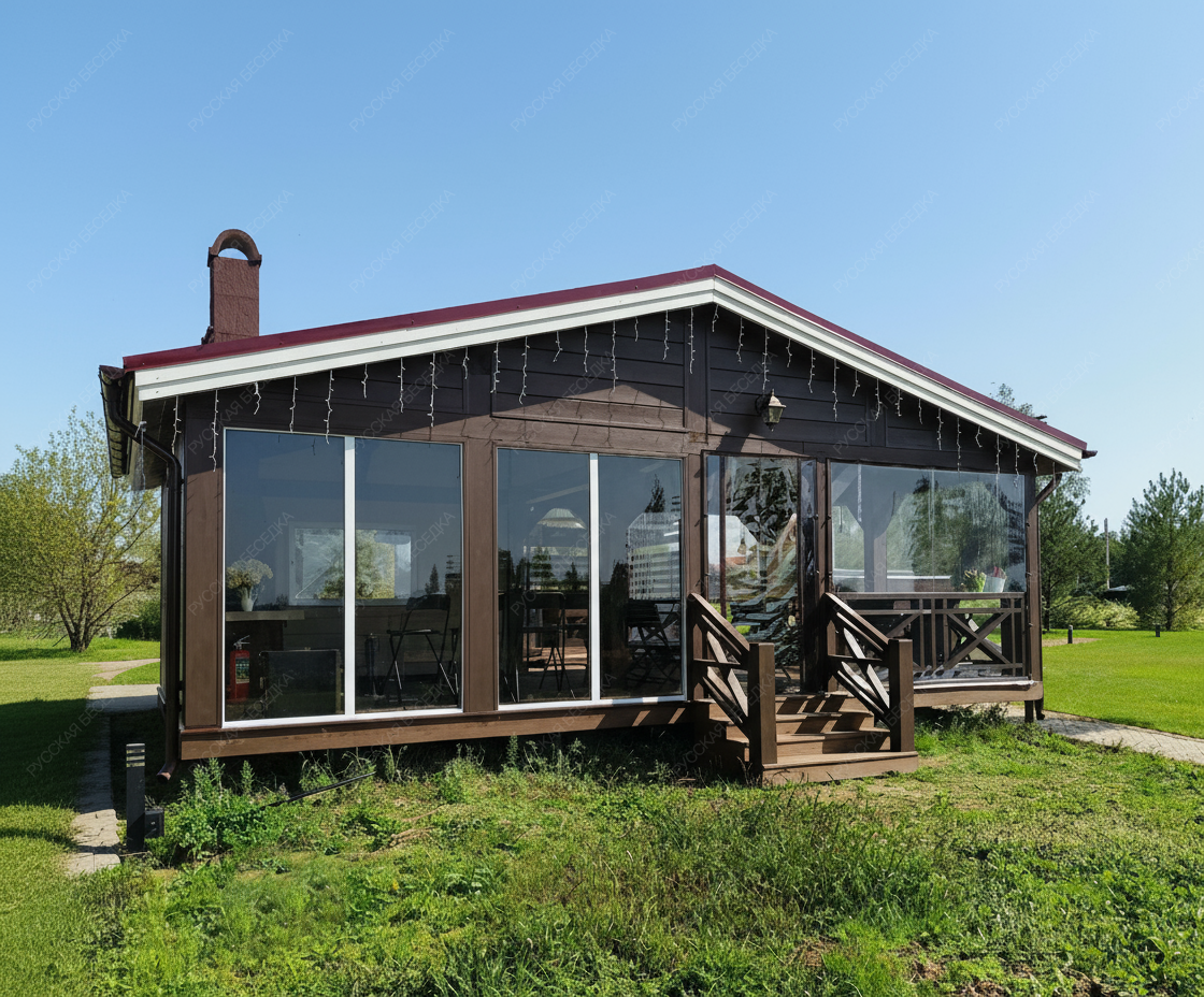 Имитация бруса 16×135 мм внутри, имитация бруса 21×135 мм снаружи.