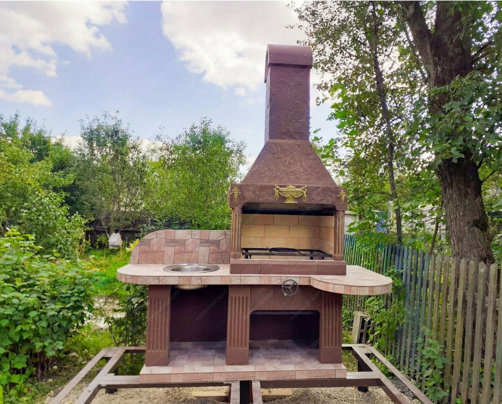 Барбекю-комплекс сделан из армированного огнеупорного бетона с добавлением керамзита.