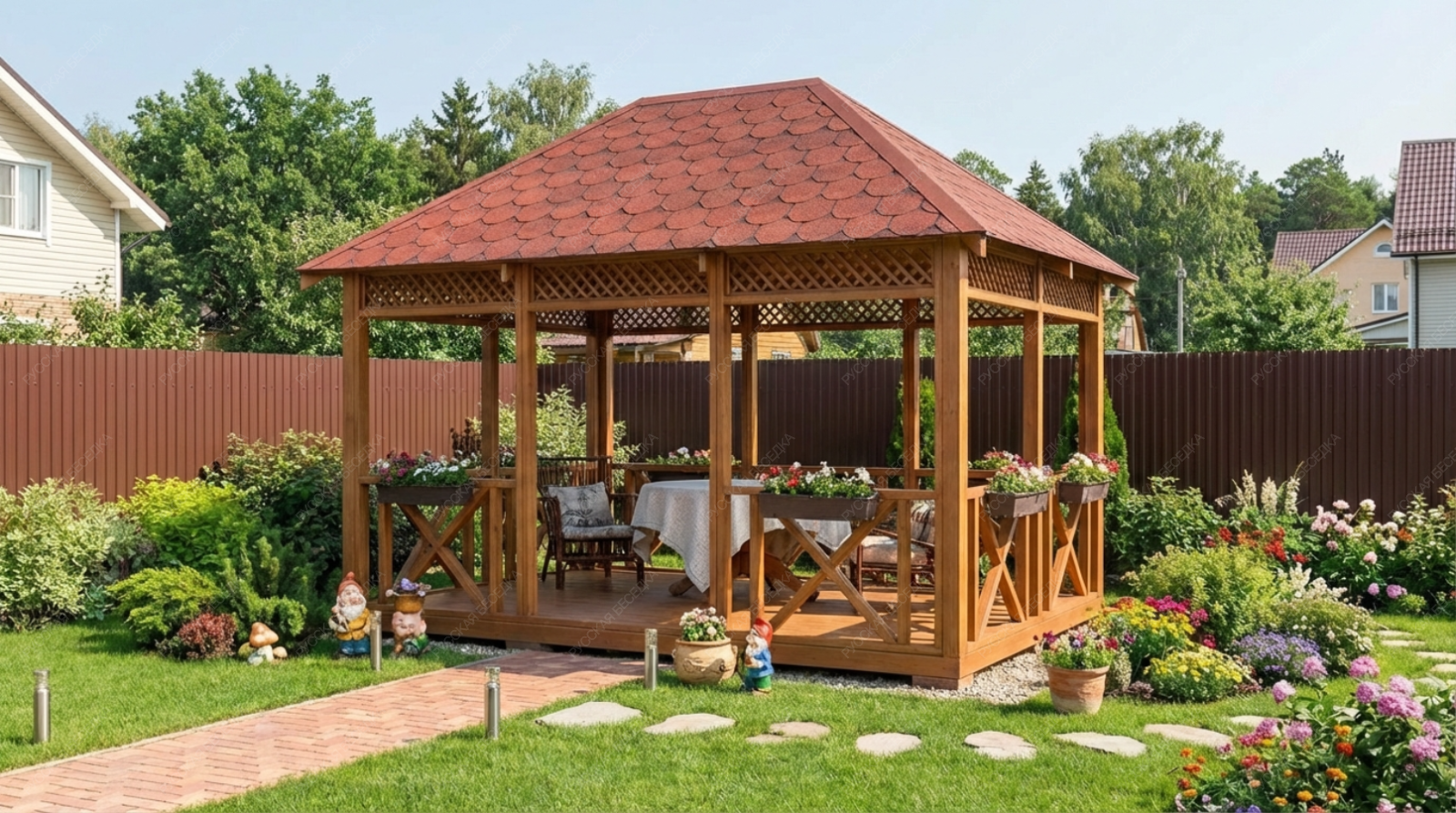 Современный ландшафтный дизайн и беседки - центральные элементы загородного участка. Беседка должна размещаться в таком месте участка, где вам будет комфортно находиться, а также она должна отвечать своему назначению и притягивать взгляды. Беседка является уникальным строением, с ее помощью можно отдохнуть за чашечкой кофе, укрыться от знойного солнца или провести шумный праздник в кругу семьи и друзей.