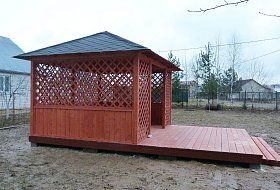 Беседка выполненная из лучших пород древесины, прослужит долгие годы и не потребует особого ухода и обслуживания. Специальные лакокрасочные материалы которые мы используем, предотвратят старение, гниение и заражение грибком конструкции кухни. Используемая огнебиозащита образует полупрозрачное полуматовое покрытие, стойкое к влаге, УФ-излучению, перепадам температуры и другим атмосферным воздействиям.