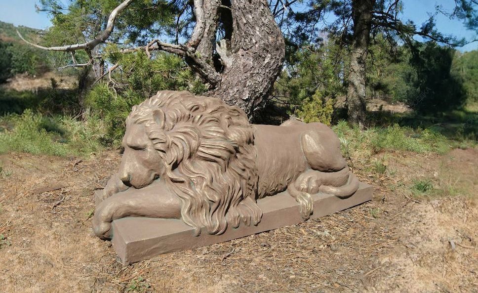 Авторская ландшафтная фигура «Лев»  добавит оригинальности, станет изюминкой вашего участка, сада или придомовой территории.   При производстве использованы экологически чистые материалы и невыгорающие финские краски. Фигура устойчива к ультрафиолетовым лучам и перепадам температур. Придорожный камень изготовлен и раскрашен вручную, что делает его индивидуальным и неповторимым.  Высота фигуры: 145 см. Вес: 12 кг  Габариты (ВxШxГ): 60/60/130 см