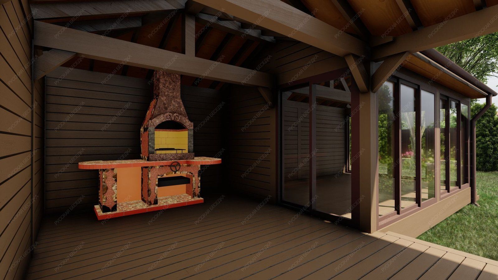 Беседка выполненная из лучших пород древесины, прослужит долгие годы и не потребует особого ухода и обслуживания. Специальные лакокрасочные материалы которые мы используем, предотвратят старение, гниение и заражение грибком конструкции кухни. Используемая огнебиозащита образует полупрозрачное полуматовое покрытие, стойкое к влаге, УФ-излучению, перепадам температуры и другим атмосферным воздействиям.