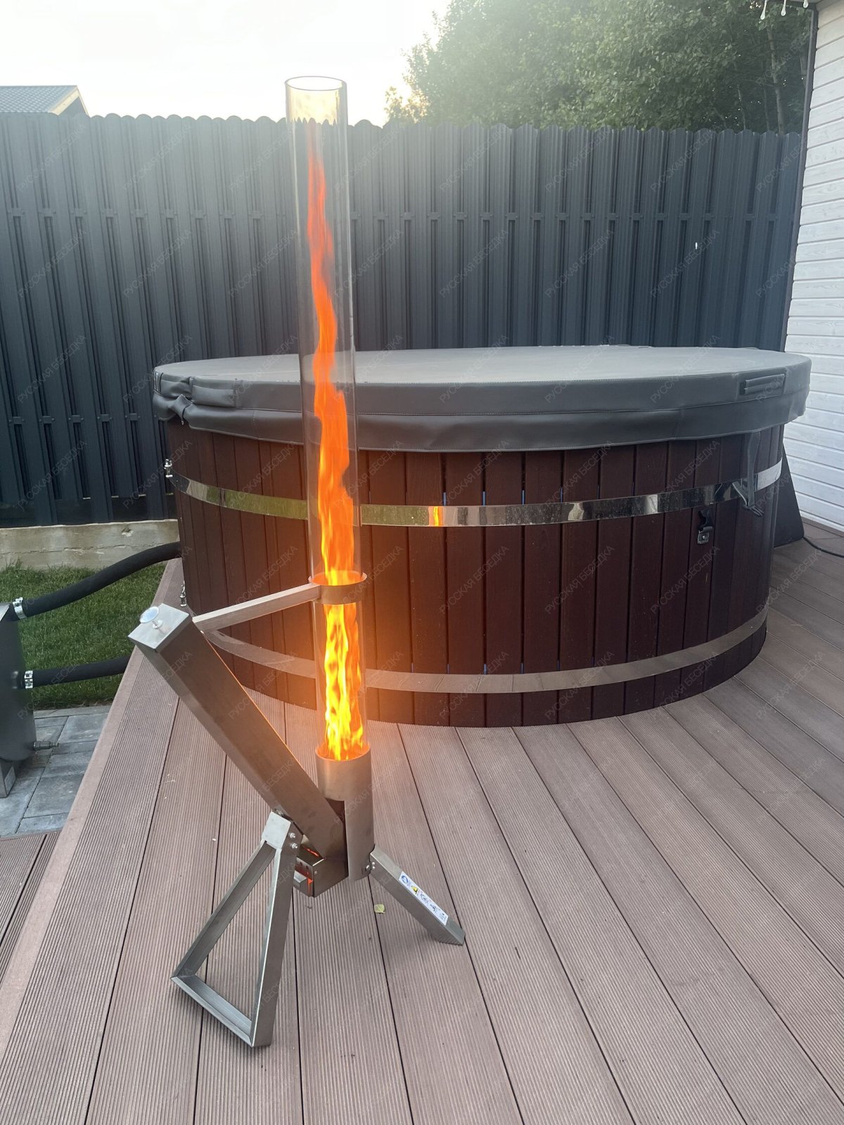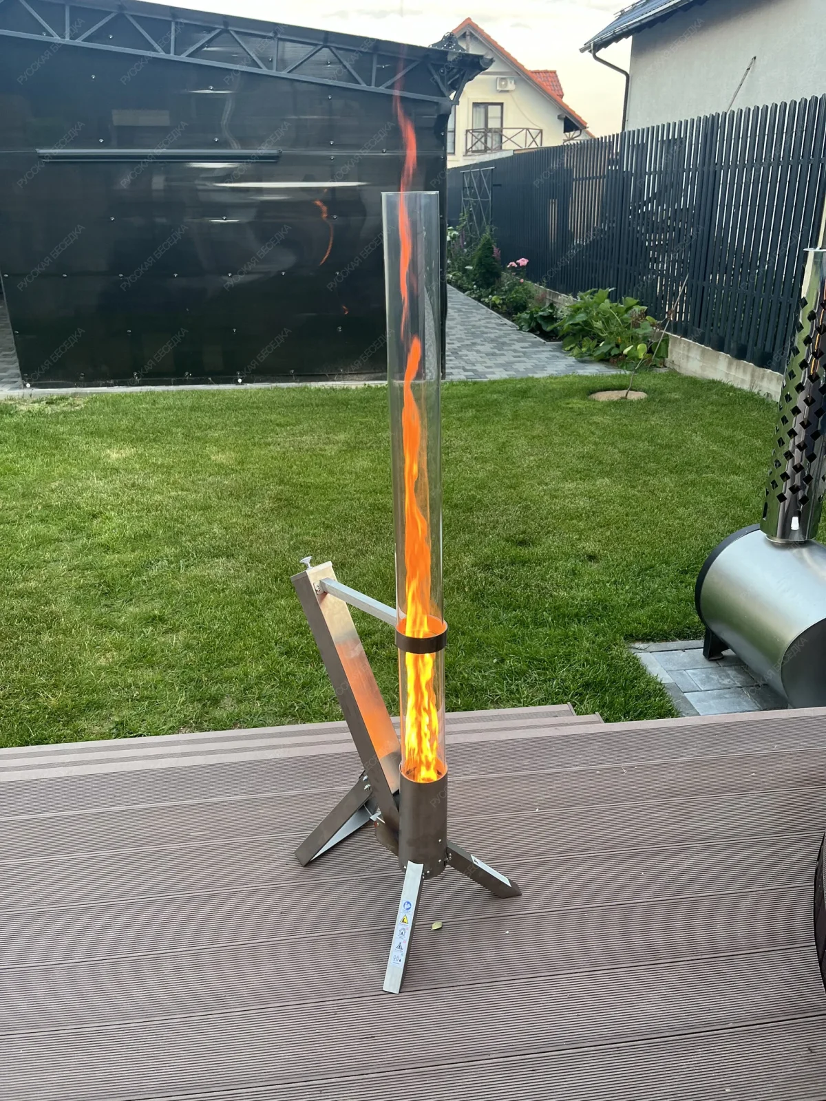 Уличный пеллетный камин Fuego – это не просто обогреватель, это настоящий символ тепла и уюта, который подарит вам комфорт даже в самые холодные вечера. Завораживающее пламя делает его идеальным выбором для создания уютной атмосферы на открытом воздухе. Благодаря своей комактности и надежности, уличный пеллетный обогреватель Fuego станет незаменимым помощником в создании комфортных условий на террасе, в саду или любом другом открытом пространстве. Название нашего обогревателя вдохновлено вулканом Фуэго, одним из самых активных вулканов в мире. Как и этот величественный природный объект, наш обогреватель излучает мощную энергию, согревая вас своим мягким светом и теплом. Принцип работы В бункер засыпаются пеллеты Поджигаете пеллеты помощью кубика для розжига Устанавливаете колбу Ориентировочно через 20-30 минут камин выходит на свою полную мощность Стеклянная колба: 8 x 100 см Потребление пеллет: 0,75 кг/ч Время работы на одной заправке: 1 час 20 минут