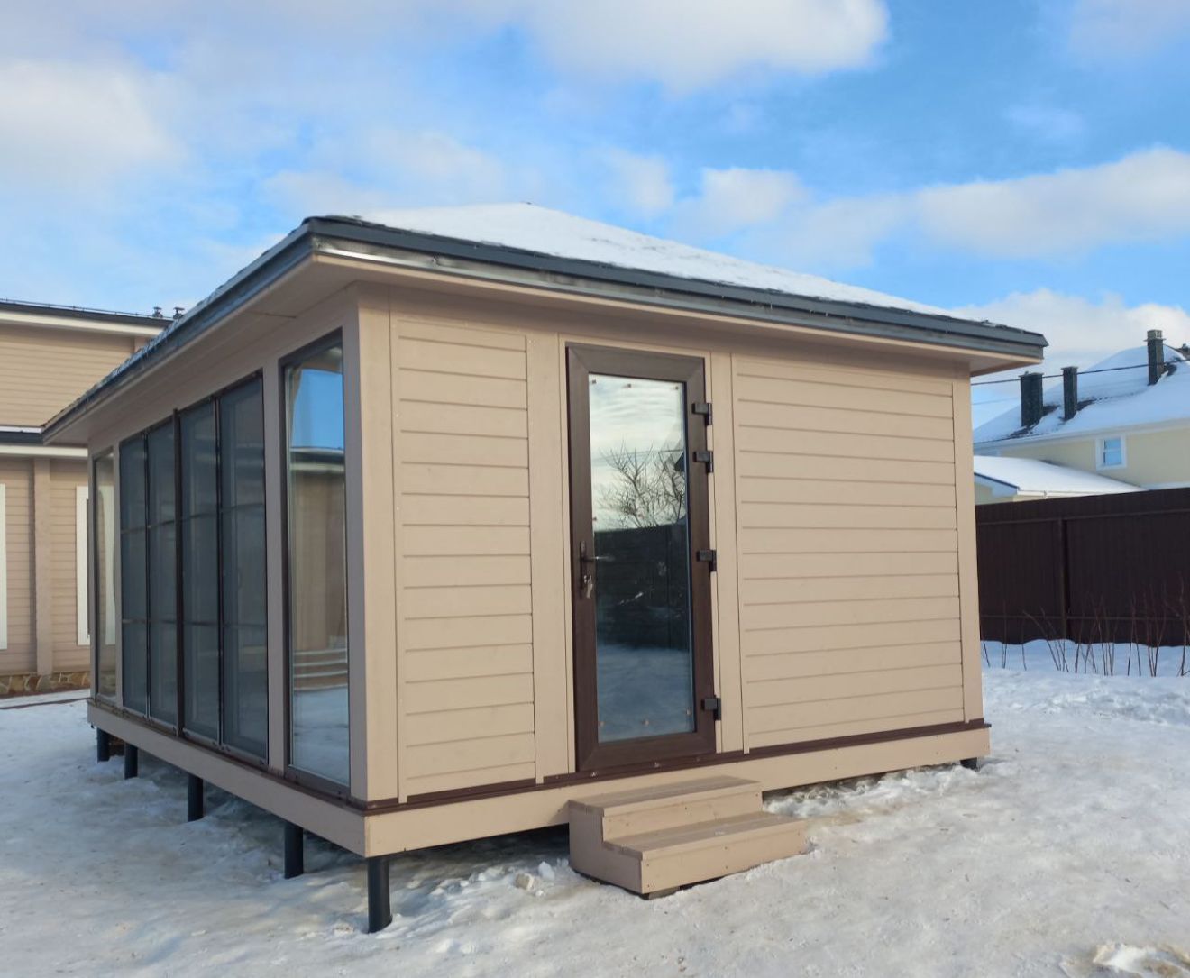 Проживание бригады, в период строительства, обеспечивается силами нашей Компании (Подрядчика) и включено в стоимость.