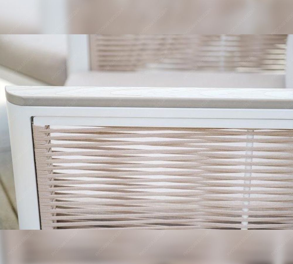 "Сан Ремо" лаунж-зона, алюминиевый каркас белого цвета, вручную оплетенный роупом серо-коричневого цвета.